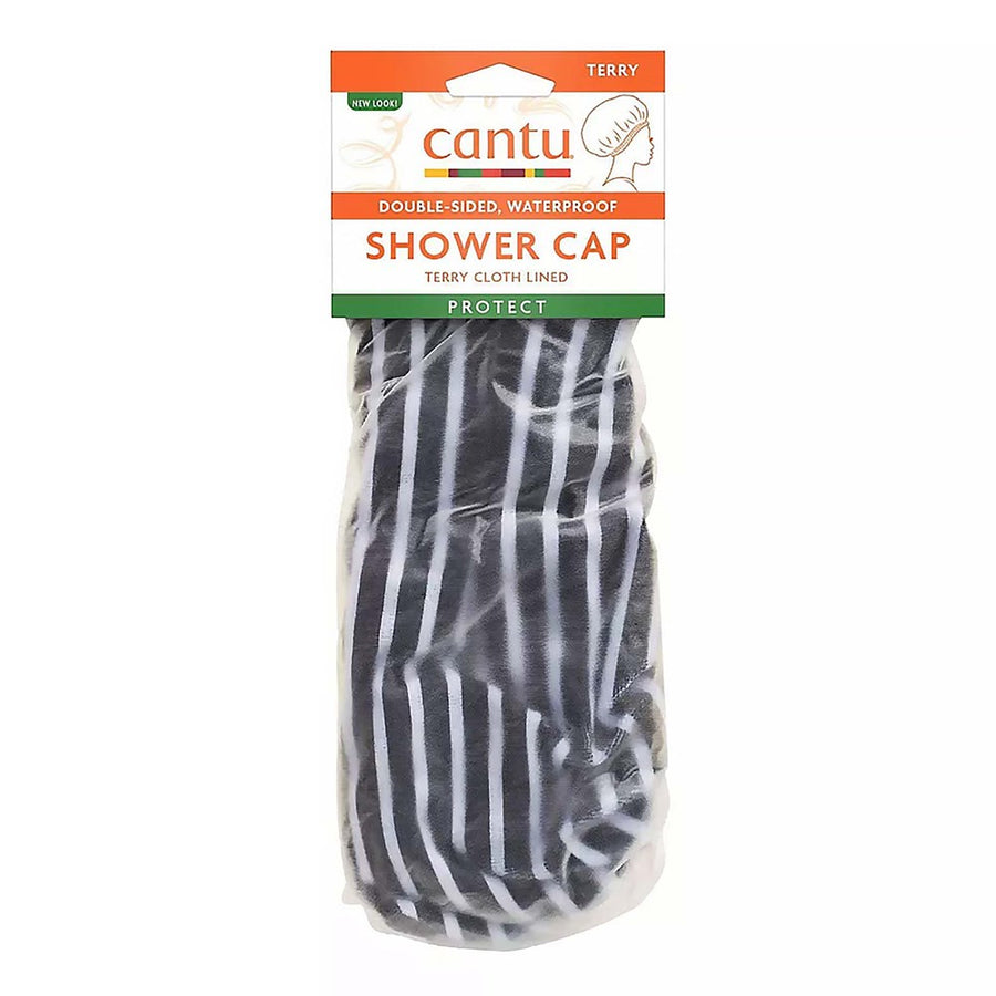 - The Cantu Satin-Lined Shower Cap adds just the right amount of flair with a beautiful striped design and is durable enough to stand the test of time against your traditional plastic shower cap.