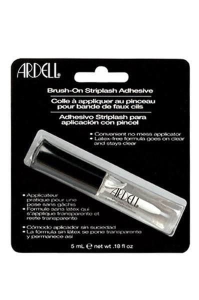 - Ardell Brush-On Lash Adhesive goes on clear and stays clear for an unmistakably sheer appearance that will hold lashes securely in place all day.