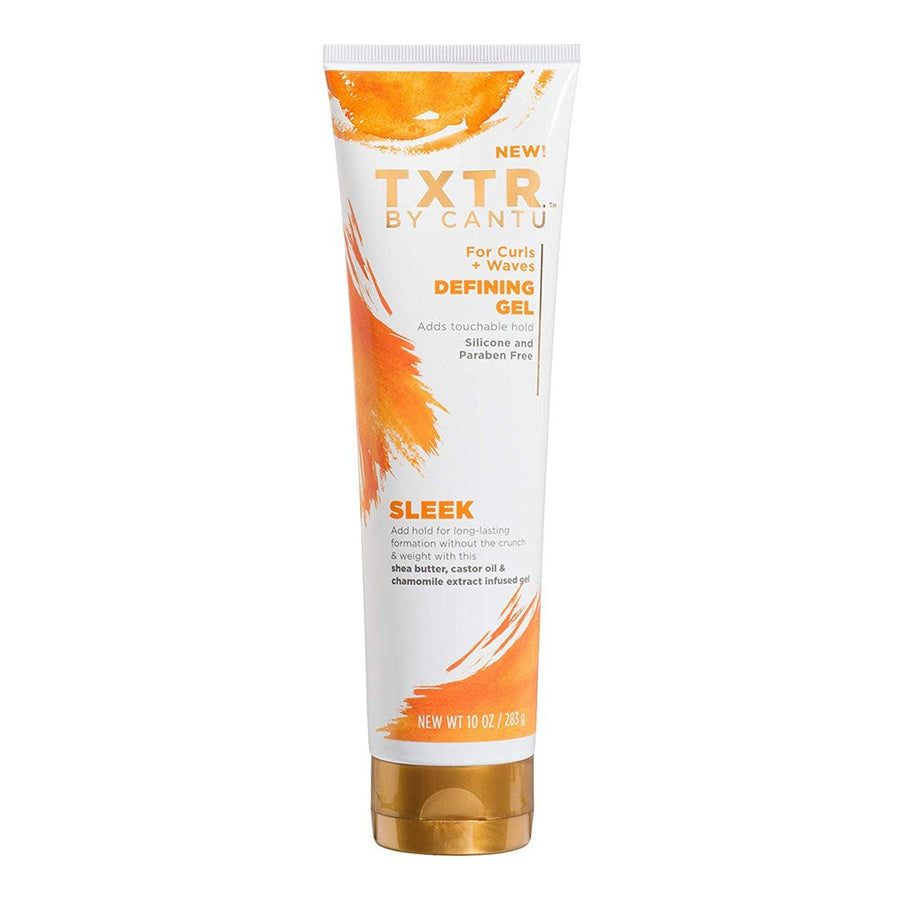 - TXTR by Cantu Defining Gel is the non-sticky, no flake defining gel great as a styler to define waves and curls without the residue. Contains no silicone, mineral oil, parabens or sulfates.