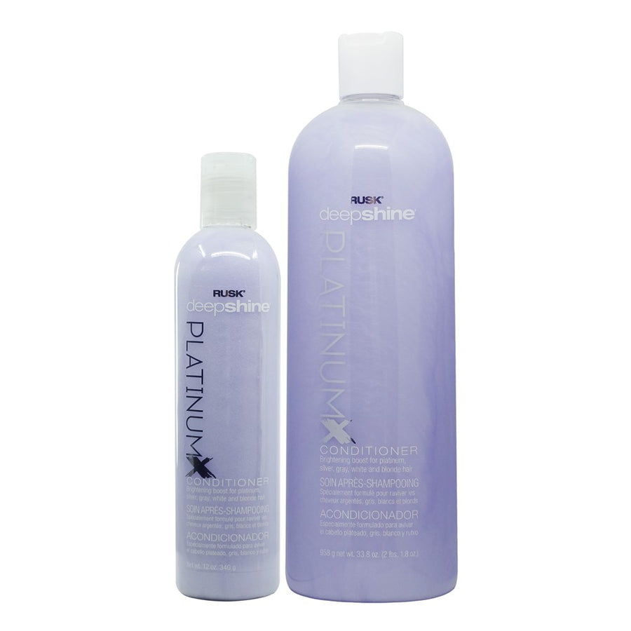 RUSK® Deepshine® PlatinumX Conditioner is a gentle, everyday, non-stripping, conditioner that neutralizes yellow, boosts brightness, and eliminates brassiness.