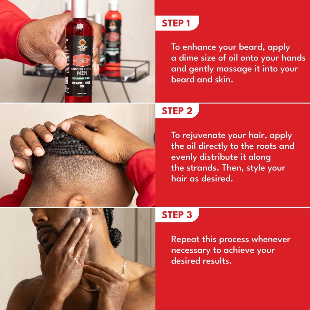 [JBCO & Red Pimento] Strong Roots Men collection combines Jamaican Black Castor Oil and Red Pimento Fruit Oil. Level up your beard & skin care regimen with our latest innovation in men’s care.
