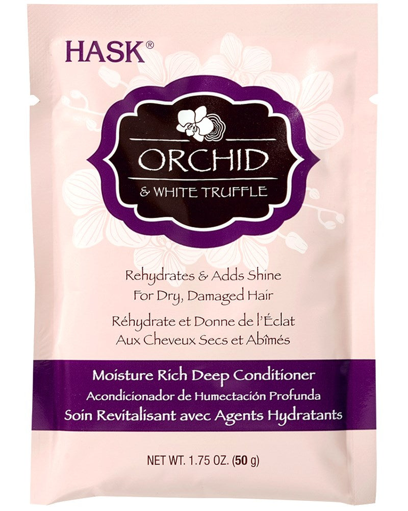 - HASK Orchid & White Truffle Moisture Rich Conditioner coats dry hair with nutrients and amino acids for supreme moisture.