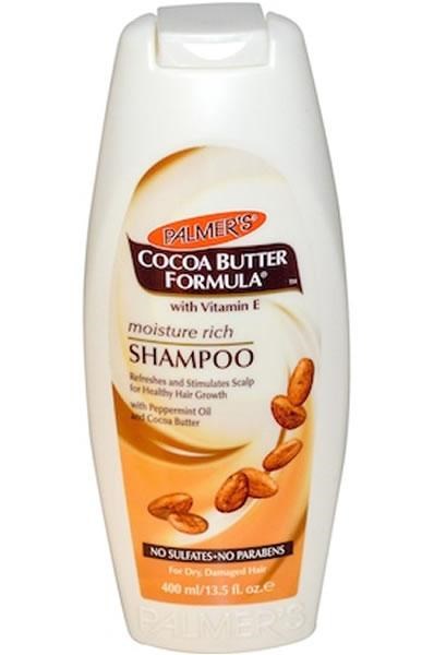 - Palmers Cocoa Butter Formula Moisture Rich Shampoo combines gentle cleansing with 100% pure Cocoa Butter and Vitamin E to moisturize and nourish hair without stripping it.