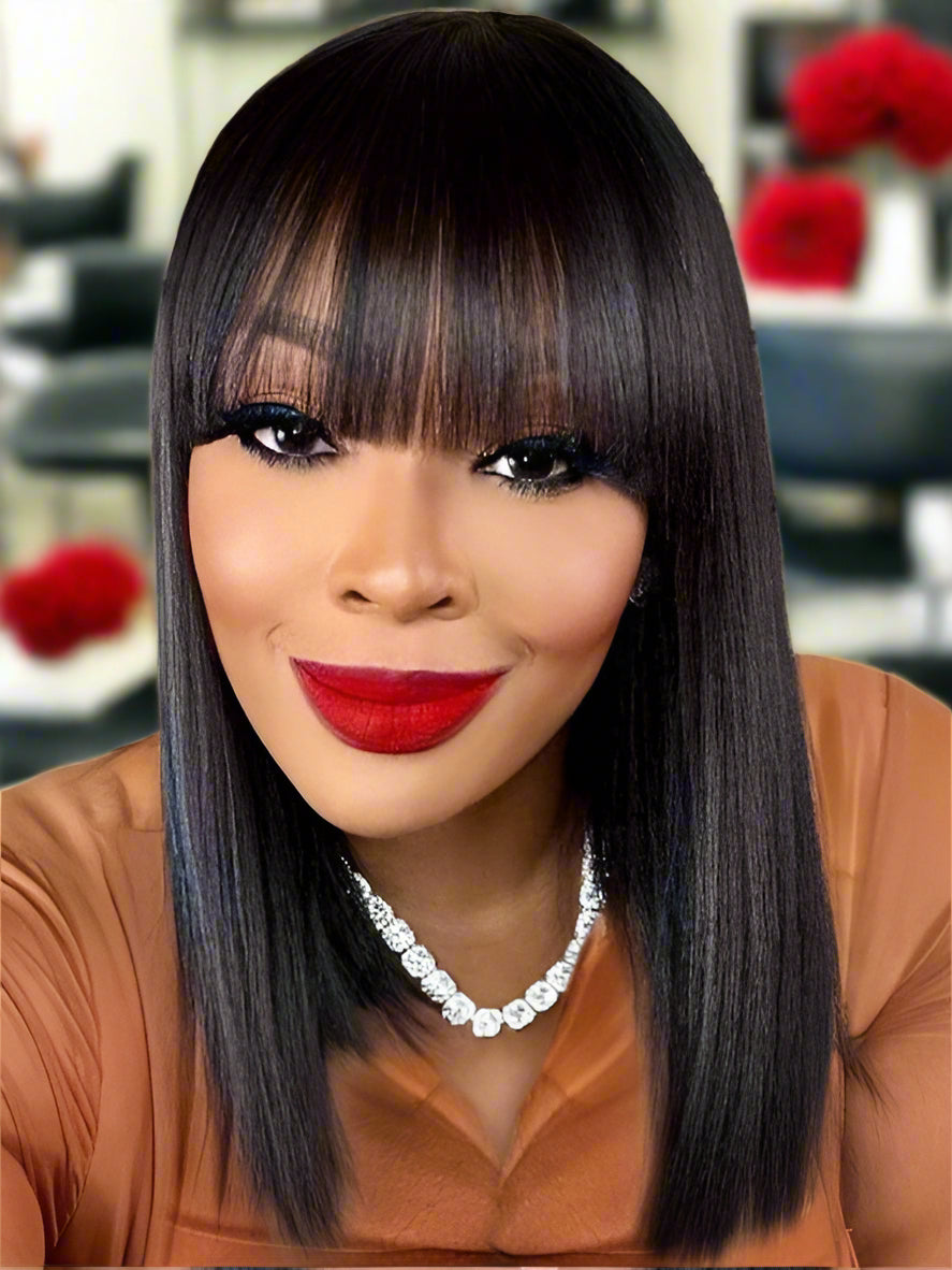 Hey Gorgeous, I’m Noelle, your new go-to for effortless, natural glam. My yaki straight texture gives you that fresh silk press look, and my soft, face-framing bangs make styling a breeze—no plucking, no lace maintenance, just instant beauty!