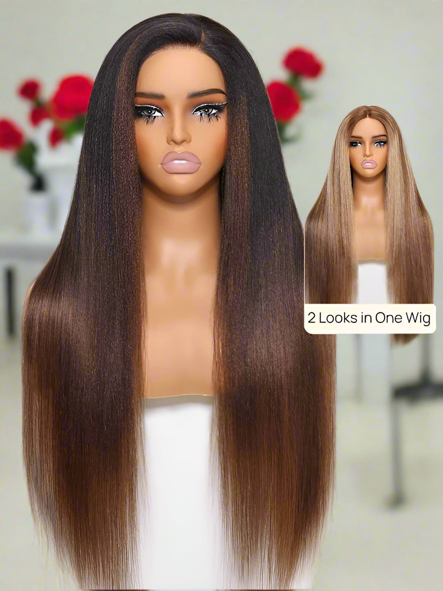 Hey Beautiful, I’m Milan, your new versatile, multi-style queen! I’m serving rich chestnut brown with honey blonde highlights, giving you that perfect sun-kissed glow all year round. But here’s the best part—I give you TWO styles in ONE! Whether you want a sleek, straight look or a voluminous layered flip, I switch up effortlessly, matching your vibe with zero effort.