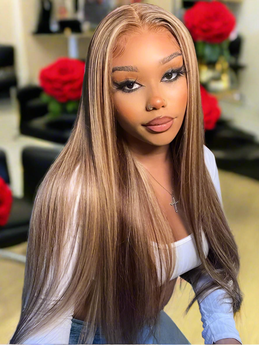 ✔ Color: Ombre Chestnut Brown & Honey Blonde Highlights – Sun-Kissed Perfection
